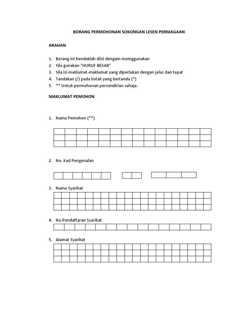 Borang Permohonan Sokongan Lesen Perniagaan Pdf